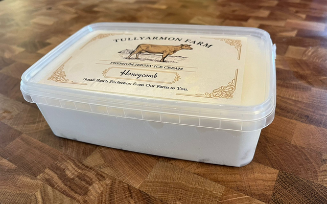 Tullyarmon Ice Cream with Honeycomb is made from our pedigree Jersey milk. It is a rich, smooth, and scoopable ice cream with nuggets of honeycomb scattered through it to give a crunch.